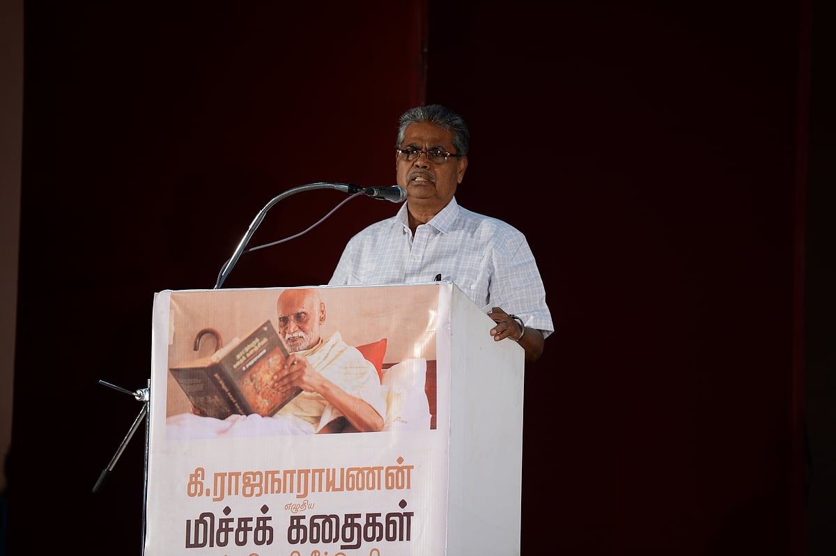பழைய தலைமுறை எழுத்தாளர்களுக்கு இங்கு பல சிக்கல்கள் இருக்கின்றன. சினிமா பாடலுக்கு 3 பல்கலைக்கழகங்களும், நகைச்சுவை நடிகருக்கு 2 பல்கலைக்கழகங்களும் டாக்டர் பட்டம் கொடுத்துள்ளன. எனக்கு கலைமாமணி விருது கொடுத்தனர். அதை நான் எங்கும் சொல்லிக் கொள்வதில்லை. அரசாங்கங்களுக்குத் தெரியவில்லை. அது யாருடைய அரசாங்கமாக இருந்தாலும் சரிதான். கி.ரா-வின் மதிப்பு, மரியாதை தெரியவில்லை. விஜயா பதிப்பகம் வேலாயுதம் முயற்சியில், கி.ரா பெயரில் விருது வழங்கப்படுகிறது. கி.ராவிடம் இன்னும் சொல்வதற்கு 20 ஆண்டுகளுக்குக் கதைகள் இருக்கின்றன" என்றார்.