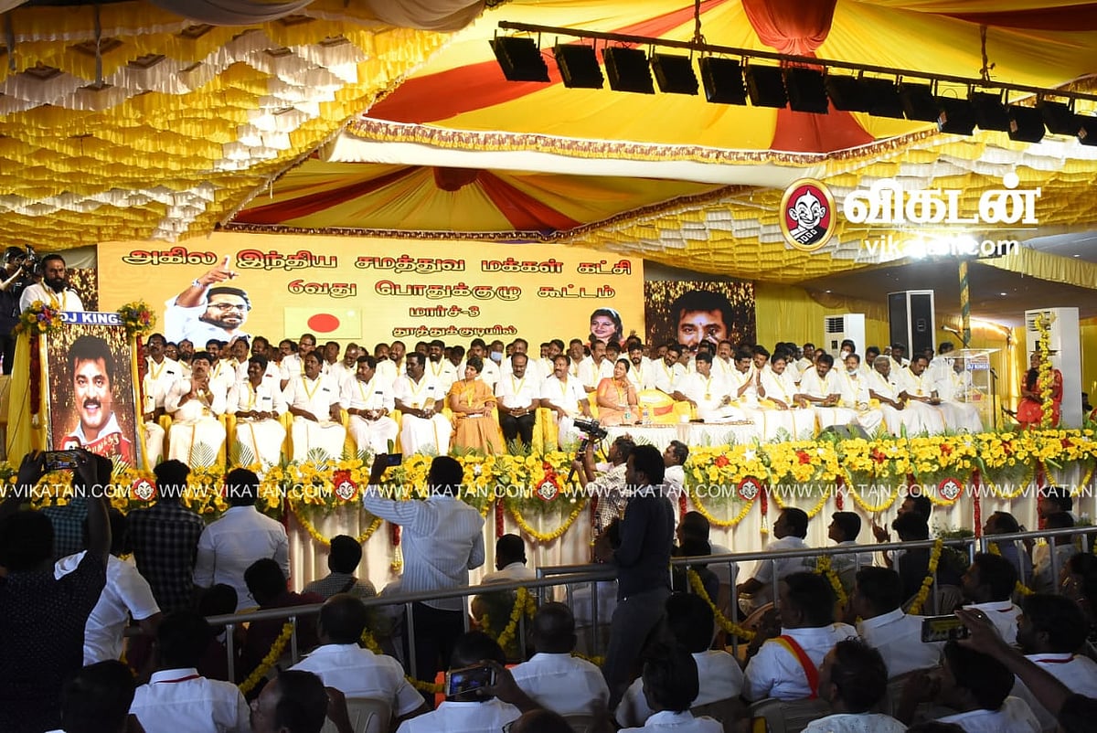 அகில இந்திய சமத்துவ மக்கள் கட்சியின் 6வது பொதுக்குழுக் கூட்டம் தூத்துக்குடியில் நடைபெற்றது. தலைவர் மற்றும் பொதுச்செயலாளராக சரத்குமாரும், பொருளாளராக சுந்தரேசனும் தேர்வு செய்யப்பட்டனர். மாநில மகளிரணிச் செயலாளரான ராதிகா சரத்குமாருக்கு கூடுதலாக மாநில முதன்மை துணைப்பொதுச் செயலாளர் பதவி வழங்கப்பட்டுள்ளது. முந்தைய பொதுக்குழுவில் நியமிக்கப்பட்ட மாநில, மாவட்ட நிர்வாகிகள் அதே பதவியில் தொடர்வதாக தலைவர் சரத்குமார் அறிவித்தார். முதலில் மைக் பிடித்த தலைமை நிலையச் செயலாளரும், மாநில மகளிரணிச் செயலாளருமான பாகீரதி, “தமிழகத்தில் மக்களுக்கு எதிரான பிரச்னைகளுக்கு முதலில் குரல் கொடுத்தவர் சரத்குமார்தான்.
