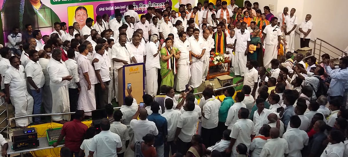 திண்டுக்கல் மாவட்டம் நிலக்கோட்டை (தனி) சட்டமன்றத் தொகுதி வேட்பாளராக தேன்மொழி அறிவிக்கப்பட்டார். அ.தி.மு.க’வின் முதல்கட்ட வேட்பாளர் பட்டியலில் இடம்பெற்றிருந்த தேன்மொழி, கடந்த வாரம் தனது பிரசாரத்தை துவங்கினார். இந்நிலையில், கூட்டணிக் கட்சியினரை அழைத்து, நிலக்கோட்டையில் உள்ள தனியார் மண்டபத்தில், வேட்பாளர் அறிமுகக் கூட்டம் நடைபெற்றது. முன்னாள் அமைச்சரும், திண்டுக்கல் அ.தி.மு.க கிழக்கு மாவட்டச் செயலாளருமான நந்தம் விஸ்வநாதன் கூட்டத்திற்கு தலைமை வகித்தார்.