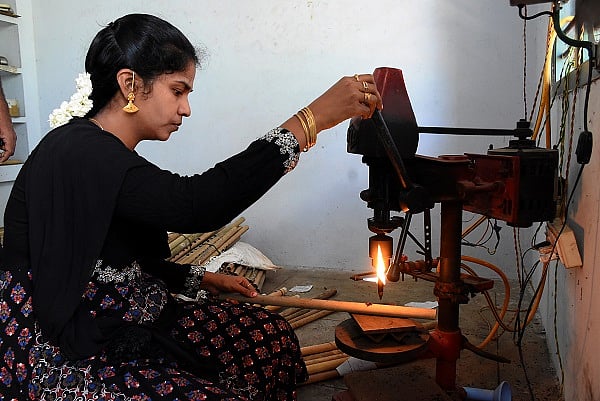 என் கணவர் பிரேம்குமாரின் அப்பா, என் மாமனார் கடந்த 55 வருடங்களுக்கும் மேலாக இந்தத் தொழிலைச் செய்துகிட்டு வந்தார். அவர் மறைந்ததும் என் கணவர் இந்தத் தொழிலைச் செய்து வந்தார். ஆரம்பத்துல அவருக்கு சின்னச் சின்ன உதவிகளைச் செய்றதுக்காகத் தொழிற்கூடத்துக்கு வருவேன். சீக்கிரமே புல்லாங்குழல் செய்யக் கத்துக்கிட்டேன்.