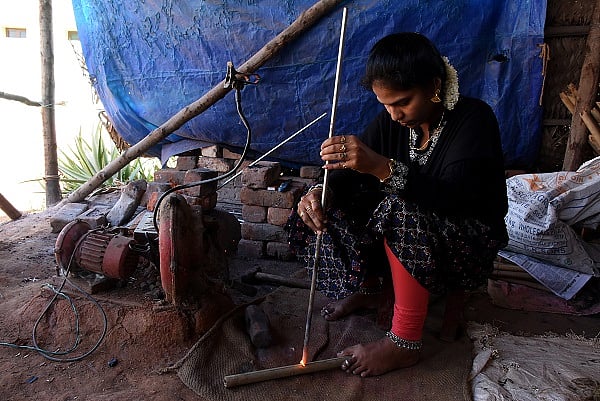 மூங்கில்களை வெயிலில் உலர வைப்பது, அவற்றை அடிக்கடி பரிசோதிப்பது, நன்கு காய்ந்ததும் சரியான வடிவத்துக்கு மூங்கில்களை வெட்டுவது என அனைத்து வேலைகளிலும் தன் பங்களிப்பைச் செய்கிறார். குழந்தைகளைப் பள்ளிக்கு அனுப்பிவிட்டு, தொழிற்கூடத்துக்குச் சென்று பணியைத் தொடங்கிவிடுகிறார்.