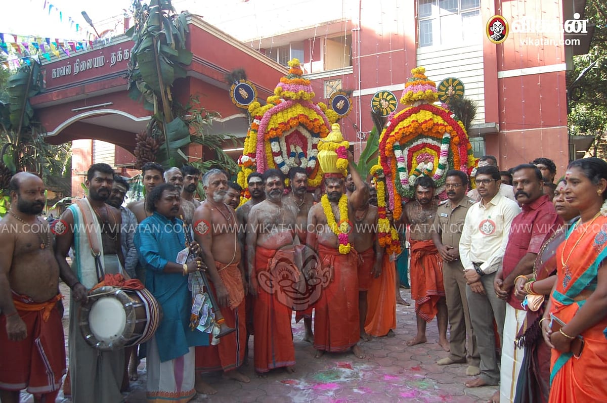வழக்கமாகக் காவலர்களின் வாக்கிடாக்கி ஒலிக்கும் தக்கலை காவல் நிலையத்தில் நாதஸ்வர மங்கள இசை ஒலித்தது. காவல் நிலையத்துக்குள் பூஜை நடந்ததால் யாரும் காலணிகள் அணிந்து ஸ்டேஷனுக்குள் அனுமதிக்கப்படவில்லை. காவலர்கள் காவி வேட்டிகட்டி, உடல் முழுவதும் சந்தனம் பூசி காவடிக்கட்டு பூஜையில் கலந்துகொண்டனர். காவலர்கள் 'வெற்றிவேல் முருகனுக்கு அரோகரா' என கோஷம் முழங்க காவடி பவனியாகச் சென்றனர். இதில் பத்மநாபபுரம் குற்றவியல் நடுவர் நீதிமன்ற நீதிபதி தீனதயாளன், தக்கலை டி.எஸ்.பி கணேசன், தக்கலை காவல்நிலைய ஆய்வாளர் சுதேசன் உள்பட பல அதிகாரிகளும், காவலர்களும், இந்துகோவில் கூட்டமைப்பு மாவட்ட துணைத்தலைவர் வேல்தாஸ் உட்பட பக்தர்கள் பலரும் கலந்துகொண்டனர்.