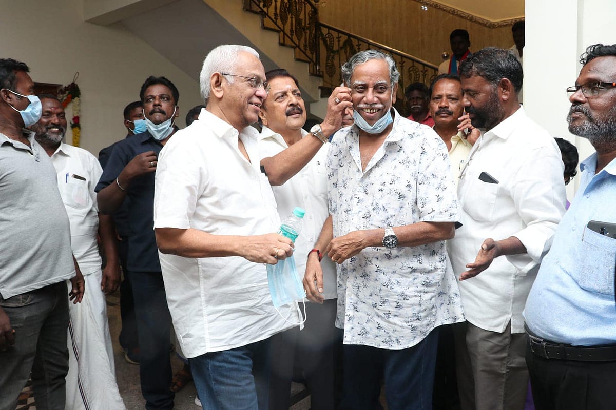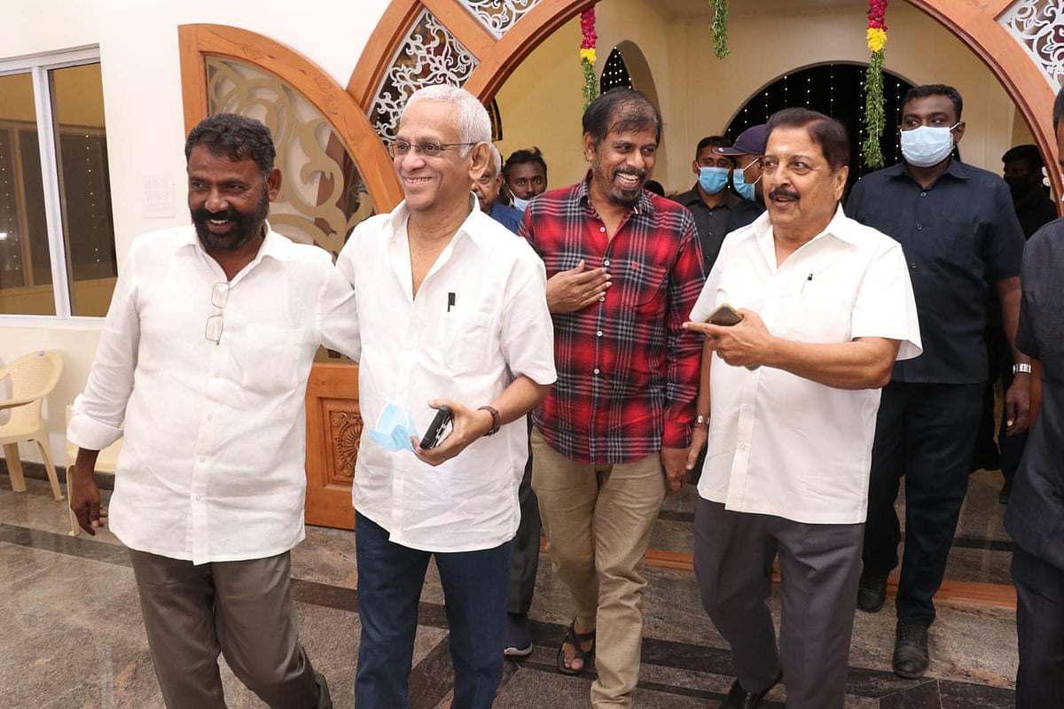 'தீரன் அதிகாரம் ஒன்று', 'ஜெய் பீம்', 'வலிமை' படங்களின் கலை இயக்குநர் கதிர், சென்னை அருகே உள்ள வானகரத்தில் திருமண மண்டபம் ஒன்றை கட்டியிருக்கிறார். நேற்று நடந்த இதன் திறப்பு விழாவிற்கு நடிகர்கள் சிவகுமார், ஆர்.கே.செல்வமணி, கலை இயக்குநர்கள் எனப் பலரும் கலந்து கொண்டு வாழ்த்தினர். விழாவில் பங்கேற்ற ஓவியர் டிராட்ஸ்கி மருதுவிடம் பேசினேன்.