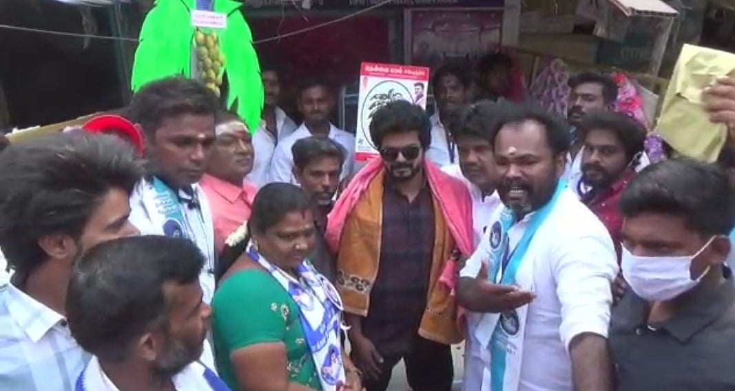 கடந்த 16-ம் தேதி விஜய் போன்ற கெட்ட்ப்பில் வந்த பாலக்காடு ராஜேஷின் வருகையால் மதுரை அனுப்பானடி பகுதியே பரபரப்பானது. அங்கு 88-வது வார்டில் போட்டியிடும் விஜய் மக்கள் இயக்க வேட்பாளர் நாகேஸ்வரிக்கு வாக்கு சேகரிக்க அச்சு அசலாக மாஸ்டர் பட விஜய் போலவே இருக்கும் ராஜேஷை அழைத்து வந்திருந்தனர்.