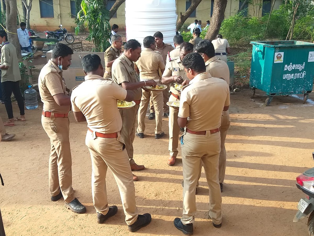 தஞ்சாவூர் மாநகராட்சியில் மொத்தம் 51 வார்டுகள் உள்ளன. இந்தத் தேர்தலில் மாநகராட்சியில் பதிவான வாக்குகள் புதிய பேருந்து நிலையம் அருகே உள்ள மன்னர் சரபோஜி அரசு கல்லூரியில் எண்ணப்பட்டு வருகின்றன. இதில் அரசு அதிகாரிகள், காவல் துறையினர், தூய்மைப் பணியாளர்கள் எனப் பலரும் வாக்கு எண்ணும் பணியில் ஈடுபட்டு வருகின்றனர். அவர்களுக்கான உணவு ஏற்பாடுகள் செய்யப்பட்டிருக்கின்றன.
