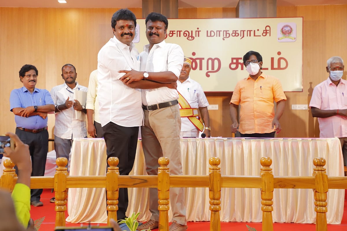 மேயராகப் பொற்றுப்பெற்று கொண்ட சண்.இராமநாதன் பேசுகையில், ``தஞ்சாவூர் மாநகராட்சிக்கு சிறந்த ஆணையர் கிடைத்திருக்கிறார் நான் ஏற்கெனவே ஆணையரை ஹக் செய்யணும் என்று சொல்லியிருந்தேன். இப்போது ஹக் செய்து கொள்கிறேன். ஆணையர் சரவணக்குமார் நமக்கு கிடைத்த பெரிய வரப்பிரசாதம். நேர்மையான சிறந்த அதிகாரி. நான் மேயராக இருக்கும் வரை ஆணையராக இருந்து நீங்கள் தான் வழி நடத்த வேண்டும், உங்களோடு நாங்களும் பணி புரிய வேண்டும்" என்றார்.