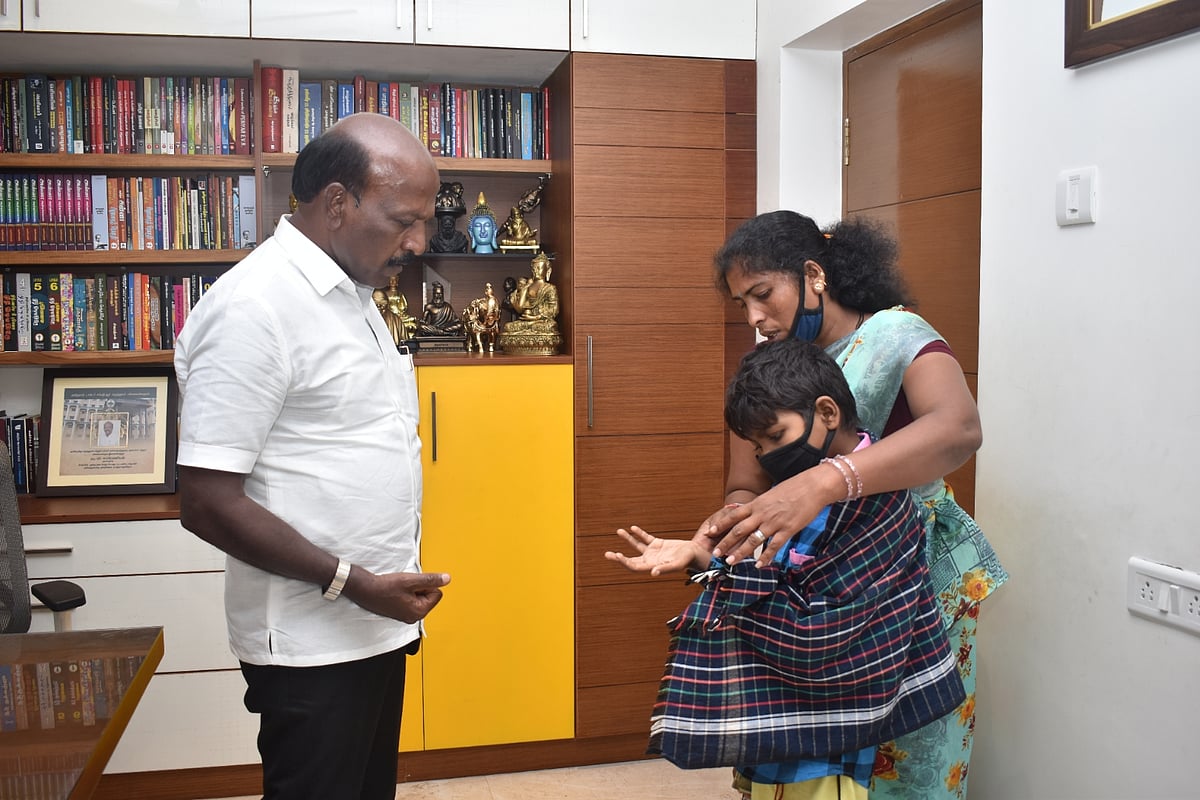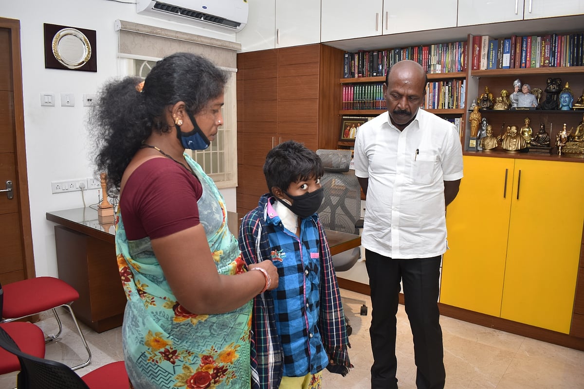 இதுக்கு நடுவுல பிள்ள உடம்புல ரத்தமில்லைன்னு ரத்தம் ஏத்தச் சொன்னாங்க. பணம் கொடுத்துதான் வாங்கிட்டிருந்தோம். இப்போ, ரத்தத்துக்கு பதிலா மருந்து ஏத்திக்கலாம்னு சொல்லியிருக்காங்க. ஓர் ஊசி 800 ரூபாய். வாரத்துக்கு நாலு ஊசி போட வேண்டியிருக்கு. மருந்துக்கும் பணம் தேவைப்படுது. பக்கத்துலேயே இருந்து சங்கராவை பார்க்க வேண்டியிருக்கிறதால வீட்டு வேலைங்களுக்கும் போக முடியலை. எங்கம்மா வீட்டு வேலைக்குப்போய் அந்தக் காசையெல்லாம் என் புள்ளையோட மருந்து, மாத்திரை செலவுக்குத்தான் கொடுத்திட்டிருக்கு. என் தங்கச்சி, தெரிஞ்சவுங்க இப்படி ஈரமிருக்கிற ஒருசிலர் என் பிள்ளையோட உயிரைக் காப்பாத்திட்டு வர்றாங்க'' என்று கண்ணீர் மல்கப் பேசிய சுதாவைப் பற்றியும் அவரின் மகன் சங்கரலிங்கம் என்கிற சங்கராவின் நிலைமை பற்றியும் சுகாதாரத்துறை அமைச்சர் மா. சுப்ரமணியத்தின் கவனத்துக்கு எடுத்துச் சென்றோம். உடனடியாக, சங்கரலிங்கத்தையும் அவன் அம்மாவையும் சந்திக்க மார்ச் 7-ம் தேதிக்கு அப்பாயின்மென்ட் கொடுத்தார். அவர் குறிப்பிட்ட நேரத்தில், சங்கரலிங்கம் குடும்பத்தை அழைத்துச் சென்றோம்.