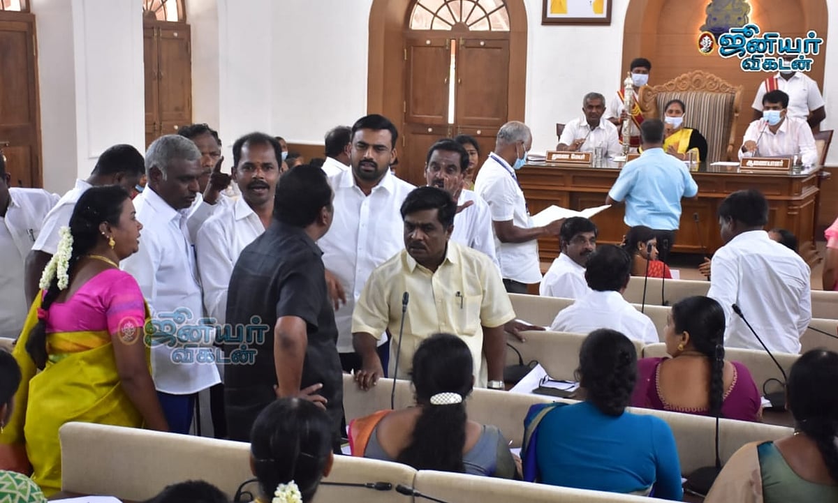 இது குறித்து இரு தரப்பினருக்கும் விவாதம் வலுத்தது. அ.தி.மு.க கவுன்சிலர் பிரபாகரன் என்பவரைத் தள்ளிவிட்டு, தி.மு.க-வினர் தாக்க முயன்றனர். இதற்கு எதிர்ப்பு தெரிவித்து அ.தி.மு.க கவுன்சிலர்கள் மாமன்றத்திலிருந்து வெளிநடப்பு செய்தனர்.