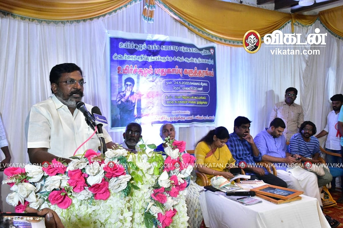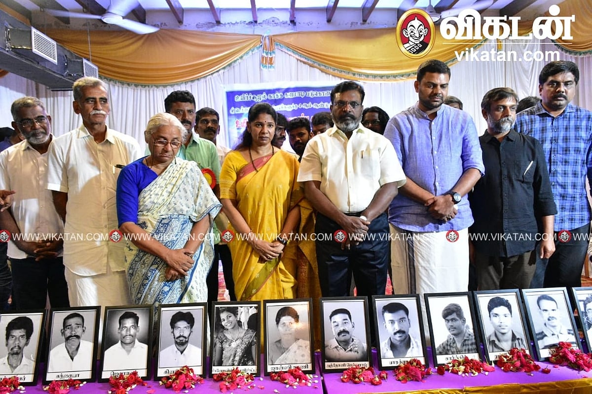 தூத்துக்குடி ஸ்டெர்லைட் எதிர்ப்பு மாவட்ட மக்கள் கூட்டமைப்பின் சார்பில், துப்பாக்கிச்சூடு சம்பவத்தின் 4-ம் ஆண்டு நினைவேந்தல் மற்றும் உயிர்ச்சூழல் பாதுகாப்புக் கருத்தரங்கம் தூத்துக்குடியில், கடந்த 24-ம் தேதி மாலையில் நடந்தது. இதில், மக்கள் இயக்கங்களின் தேசியக் கூட்டமைப்பினைச் சேர்ந்த மேதா பட்கர், தூத்துக்குடி மக்களவைத் தொகுதி உறுப்பினர் கனிமொழி, விடுதலைச் சிறுத்தைகள் கட்சியின் தலைவரும், எம்.பி-யுமான தொல்.திருமாவளவன், எஸ்.டி.பி.ஐ., கட்சியின் மாநிலத் தலைவர் நெல்லை முபாரக், மே-17 இயக்கத்தின் தலைவர் திருமுருகன் காந்தி, பச்சைத்தமிழகம் கட்சியின் தலைவர் உதயகுமாரன், பூவுலகின் நண்பர்கள் அமைப்பினைச் சேர்ந்த சுந்தர்ராஜன் ஆகியோர் கலந்துகொண்டனர்.