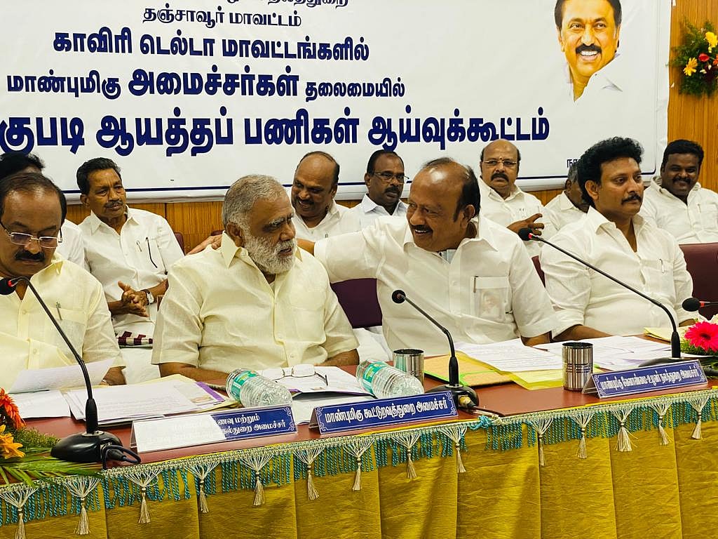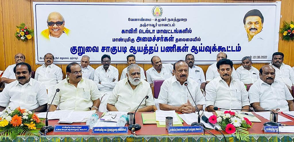 தஞ்சாவூர் மாவட்ட ஆட்சியர் அலுவலகத்தில், காவிரி டெல்டா மாவட்டங்களில் குறுவை சாகுபடிக்கான ஆயத்தப் பணிகள் குறித்து ஆய்வுக் கூட்டம் நடைபெற்றது. இதில் வேளாண்மை மற்றும் உழவர் நலத்துறை அமைச்சர் எம்.ஆர்.கே.பன்னீர் செல்வம், கூட்டுறவுத்துறை அமைச்சர் ஐ.பெரியசாமி உள்ளிட்ட அமைச்சர்கள் மற்றும் தஞ்சாவூர், திருவாரூர், நாகை உள்ளிட்ட மாவட்டங்களை சேர்ந்த விவசாயிகள் கலந்துகொண்டனர்.