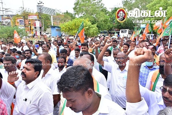 தேர்தலின் போது தி.மு.க கொடுத்த வாக்குறுதிகளை நிறைவேற்றவில்லை என்பதற்காக தமிழ்நாடு பாரதிய ஜனதா கட்சியின் சார்பில் மாநிலம் முழுவதும் உண்ணாவிரதம் மற்றும் ஆர்ப்பாட்டங்கள் நடைபெற்று வருகின்றன. நெல்லை மாவட்ட பா.ஜ.க சார்பாக பாளையங்கோட்டை ஜோதிபுரம் திடலில் கண்டன ஆர்ப்பாட்டம் நடைபெற்றது