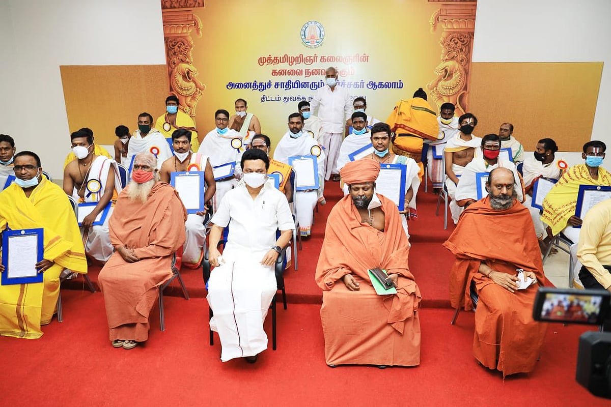 தற்போது அர்ச்சகர் பயிற்சிப் பள்ளிகளில் படிக்கும் மாணவர்களுக்கு தமிழ் முறைப்படி குடமுழக்கு, தமிழ் வேள்விகள், ஒவ்வொரு கடவுளுக்குமான தமிழ் வழிபாட்டு முறைகள், போற்றி நூல்கள், தமிழ் நாட்காட்டி ஆகியவற்றை முன்னாள் மாணவர்கள், அர்ச்சகர் பயிற்சி பெற்ற மாணவர் சங்கம், தமிழக அரசு நியமனம் செய்திருக்கும் அர்ச்சகர் பயிற்சி பெற்ற மாணவர்களின் சங்கம் இணைந்து திருவண்ணாமலை அருள்மிகு அருணாச்சலேஸ்வரர் திருக்கோயில் மாணவர்களுக்கு வழங்கியிருக்கிறோம். சமூகநீதியை நிலைநாட்டவும், தமிழ் வழிபாட்டை ஊக்குவிக்கவும் இந்து சமய அறநிலையத்துறை மேற்கொண்டு வரும் அனைத்து நடவடிக்கைகளுக்கும் எமது சங்கம் உறுதுணையாக இருக்கும். அர்ச்சகர் பயிற்சி முடித்த 176 மாணவர்களுக்கு பணி நியமனம் வழங்க வேண்டும் என்று முதல்வரையும், இந்து சமய அறநிலையத்துறையையும் கேட்டுக் கொள்கிறோம்" என்று குறிப்பிடப்பட்டிருக்கிறது.